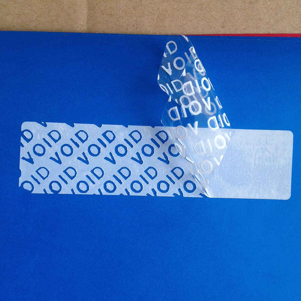 One –time use only. The partial transfer security VOID material made from PET with release glassine paper ,the thickness of face material is :25, 50mircon .The weight of the glassine paper is 80g . Exterior appearance unchanged ,no trace when removed from the applied objects . Once opened, the face material would be destroyed , partial adhesive residue would be attached on the products ,also the hidden words “void or o void open “ will be attached on the products .We can meet our customers' requirements and make the special edition mould.